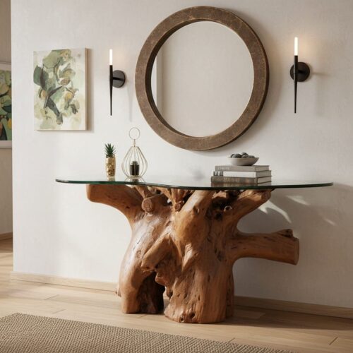 علامة تجارية رائدة تستغل الجمال الخام لجذور الأشجار لإنشاء طاولات ومنتجات خشبية رائعة.