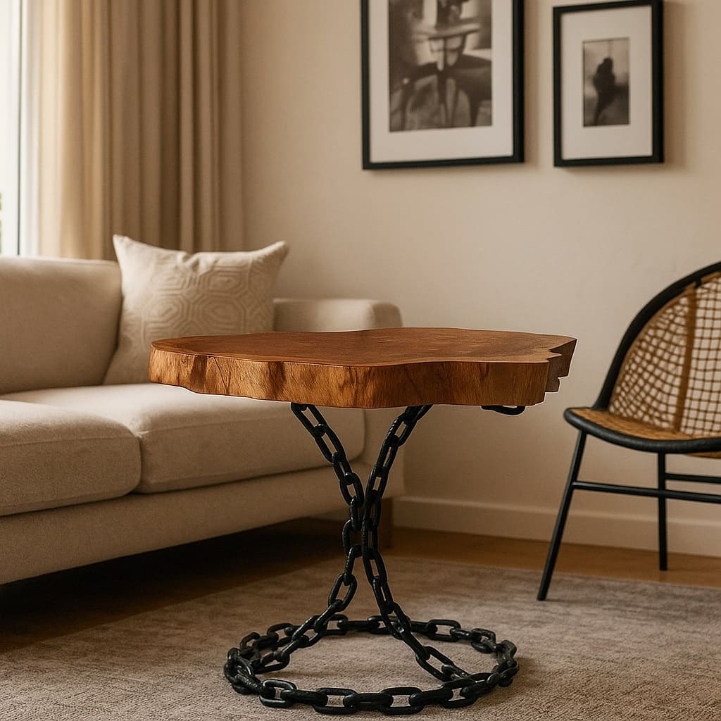 Decor Compatibility: This table complements various decor styles, highlighting the beauty of natural wood logs and their details.