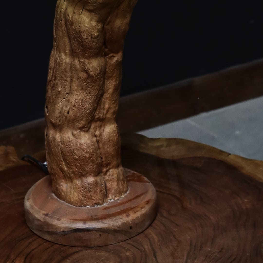 قاعدة الأباجورة مصنوعة من أجود أنواع الخشب الطبيعي الذي تم تنفيذه من صندوق خشبي منحوت بأسلوب يعكس جمال الطبيعة الخام.