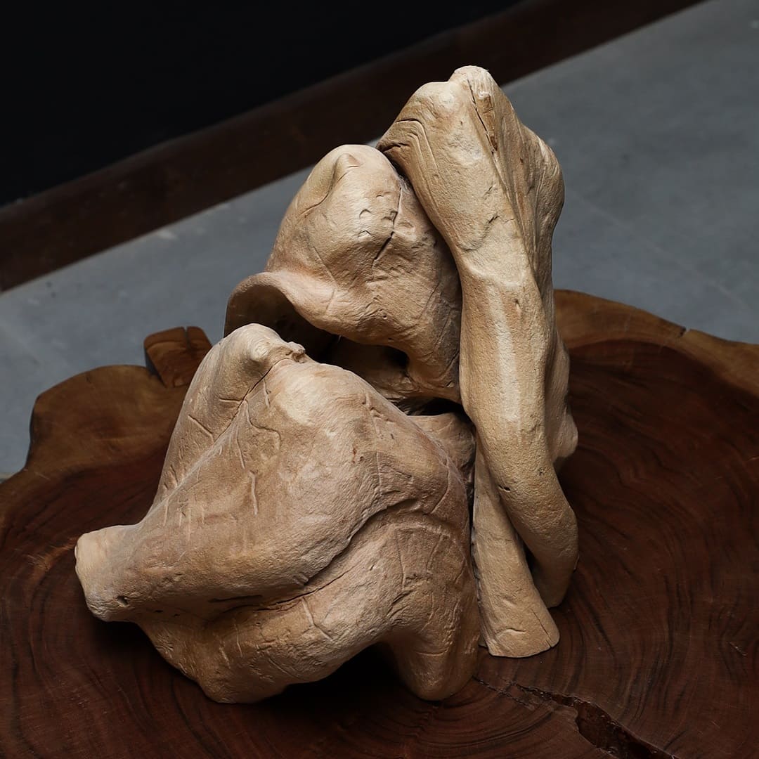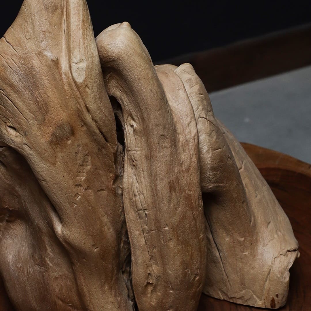 تتميز هذه القطعة بأنها مصنوعة من أجود أنواع الخشب الطبيعي بأسلوب تجريدي يجمع بين القوة والسيولة، ويبدو شكلها وكأنه مزيج من طيات الطبيعة الحرة والمنحنيات المنحوتة بعناية، مما يمنحها مظهرًا ديناميكيًا وكأنها تحكي قصة من خلال ميزاتها الفريدة.
