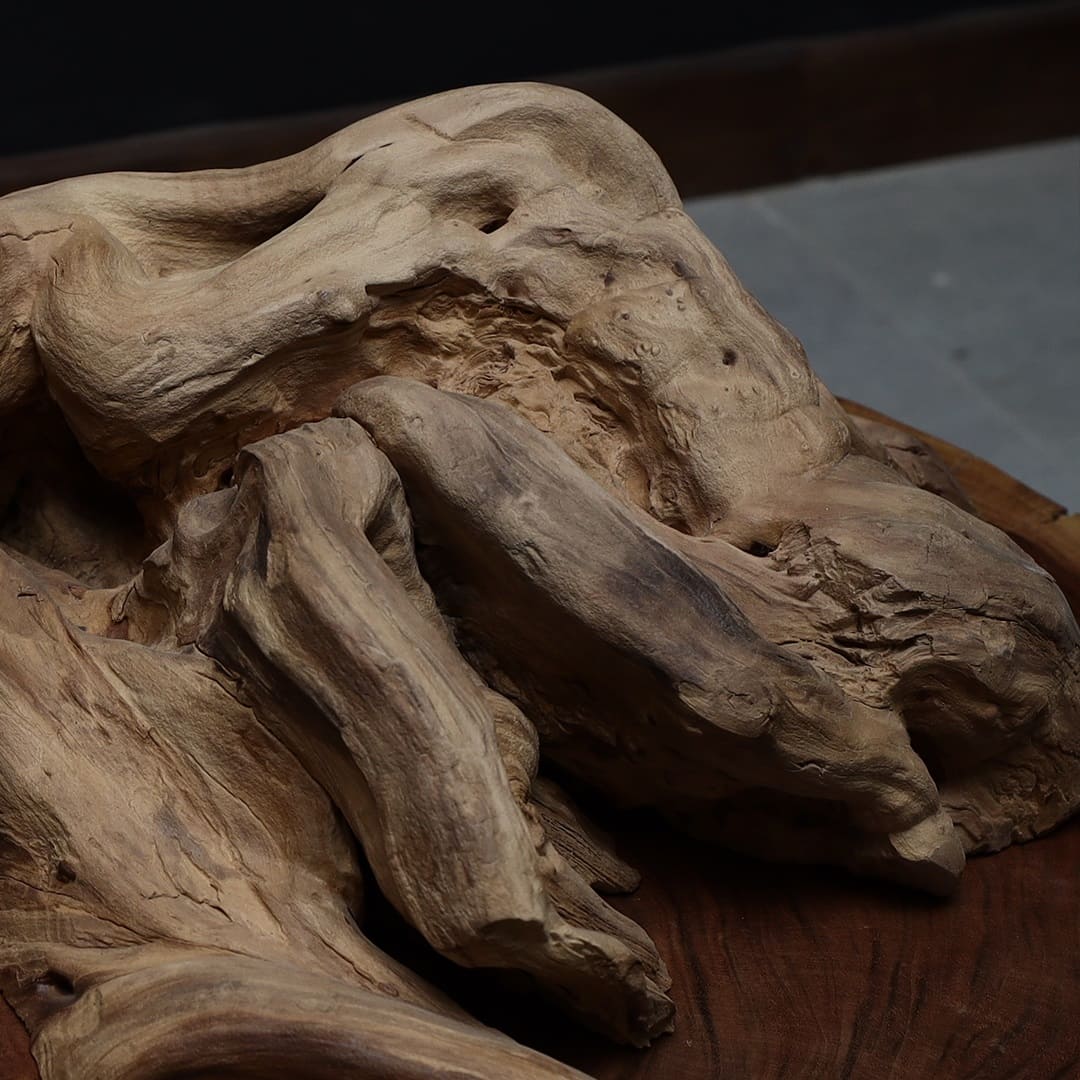 تجسد هذه القطعة الخشبية مزيجًا فريدًا من الأخشاب الطبيعية؛ حيث يأخذ الخشب أشكالًا متشابكة، مع منحنيات ناعمة وتقلبات غير متوقعة؛ مما يمنحه حضورًا مميزًا يضيف لمسة طبيعية ساحرة إلى أي مساحة.
