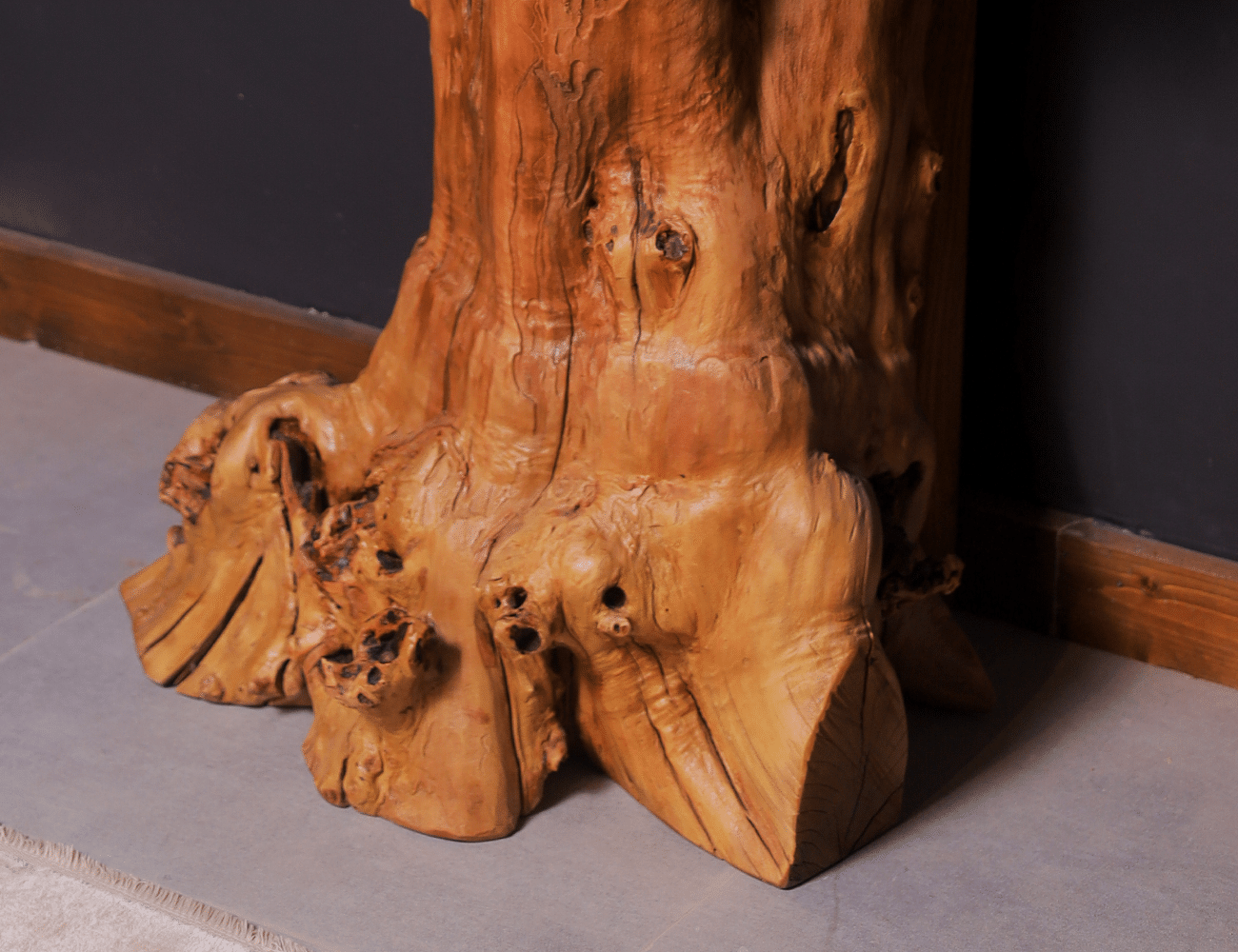 الطبيعة والإبداع البشري: يتميز حوض الجذر هذا بتصميم فريد وغير قابل للتكرار. تُستخدم الجذور كعنصر مركزي في إنشاء بنيتها، ويتم اختيارها بعناية لتكون متناغمة وتضيف لمسة طبيعية إلى المنزل.