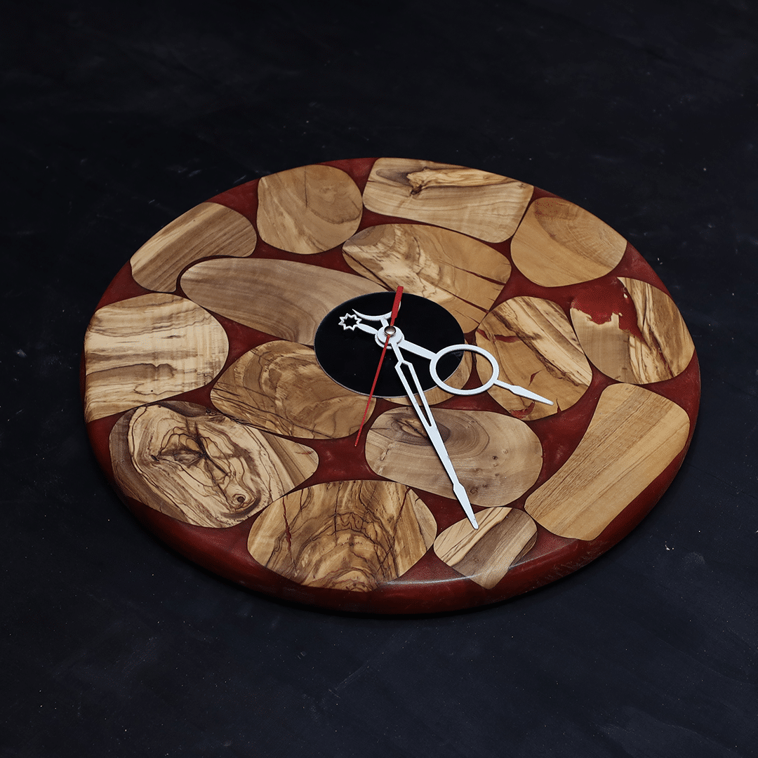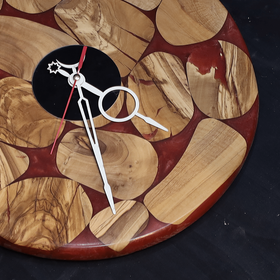 تتميز هذه الساعة بتصميمها من أجود أنواع الخشب الطبيعي، كما تتميز بمزجها مع مادة الإيبوكسي الفاخرة بلون أحمر جذاب، مما يجعلها إضافة استثنائية ومثالية لديكور منزلك الفاخر أو مكتبك الإداري.