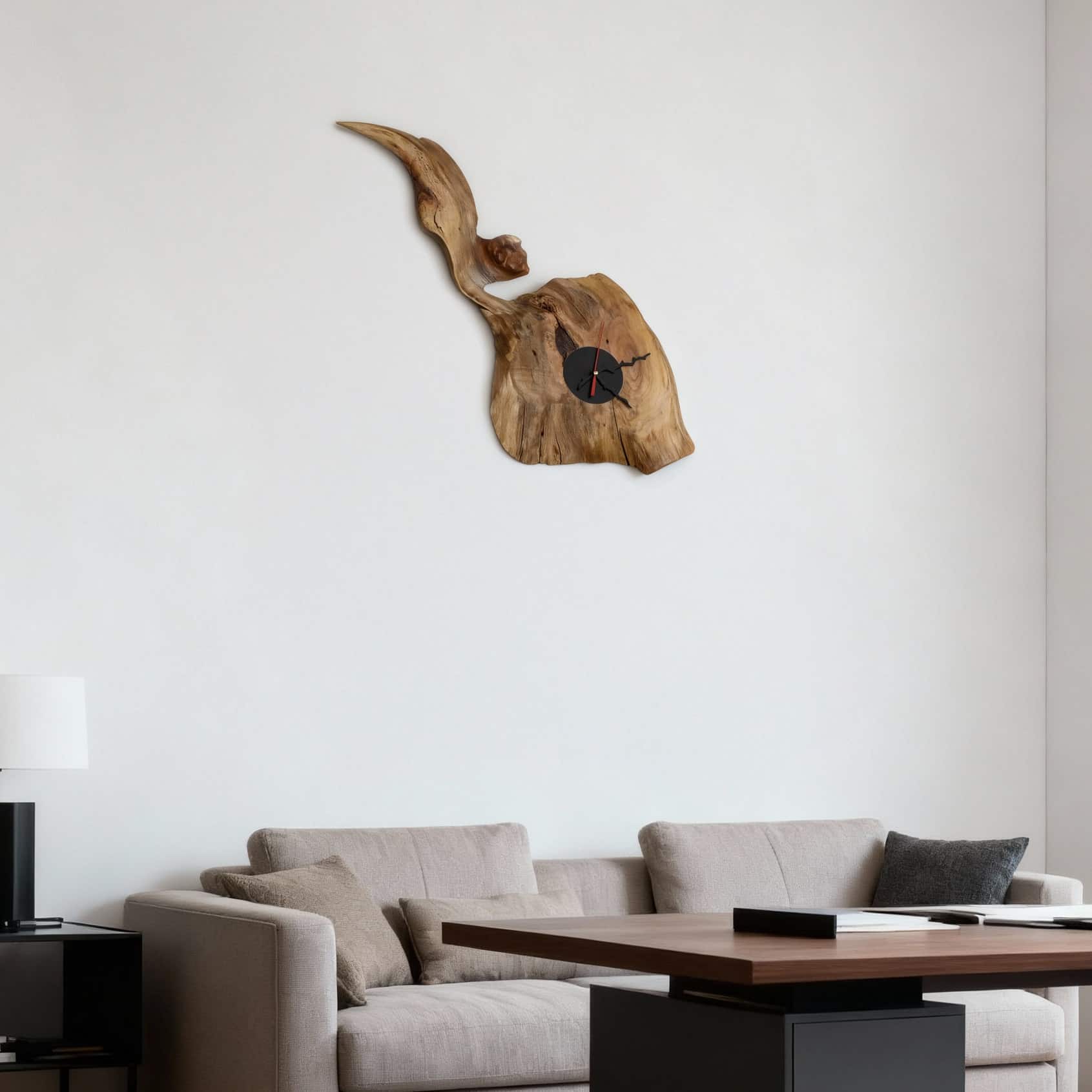 هذا التصميم الفريد لا يجعل الساعة أداة لتحديد الوقت فحسب، بل أيضًا قطعة زخرفية فنية ملفتة للنظر، ومناسبة لتزيين المساحات الداخلية مثل غرف المعيشة أو المكاتب، خاصة لمحبي التصاميم المستوحاة من الطبيعة والمواد العضوية.