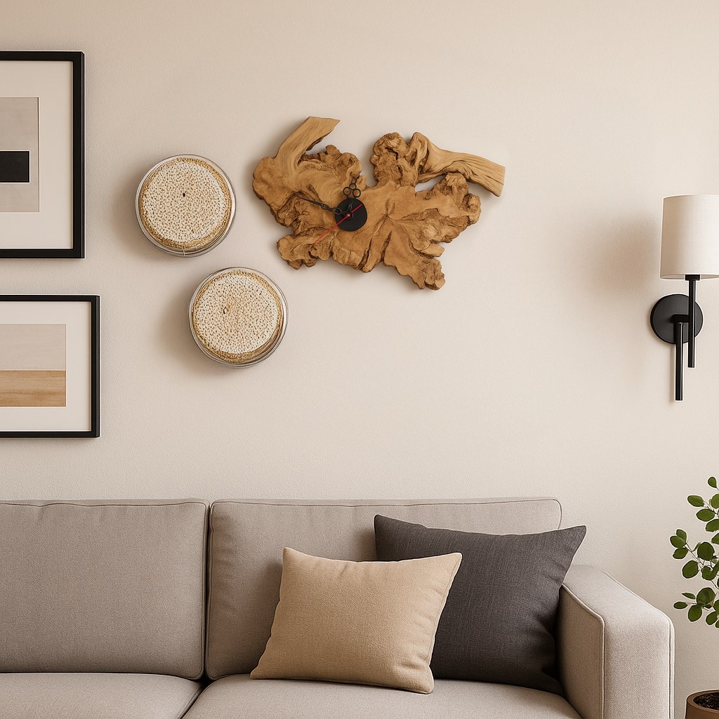 وتتميز الساعة بأنها مصنوعة بدقة عالية، مع الحفاظ على ملمس الخشب الطبيعي، مما يعزز جاذبيتها وأصالتها.