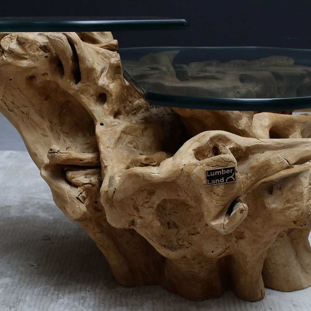 وتتميز القاعدة بتداخل الخشب وأشكال انسيابية تحافظ على التفاصيل الأصلية للجذور، مثل العقد والأمواج الطبيعية؛ وهذا يضيف لمسة من الدفء والواقعية إلى أي مساحة توضع فيها.