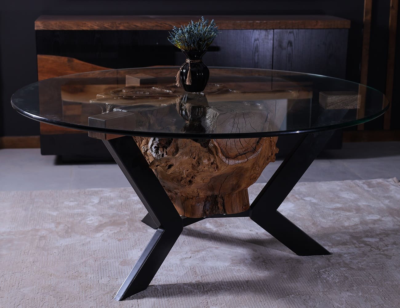 طاولة طعام من الخشب الطبيعي والمعدن DT0006