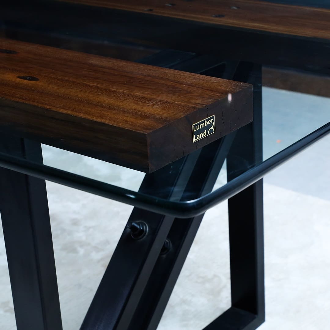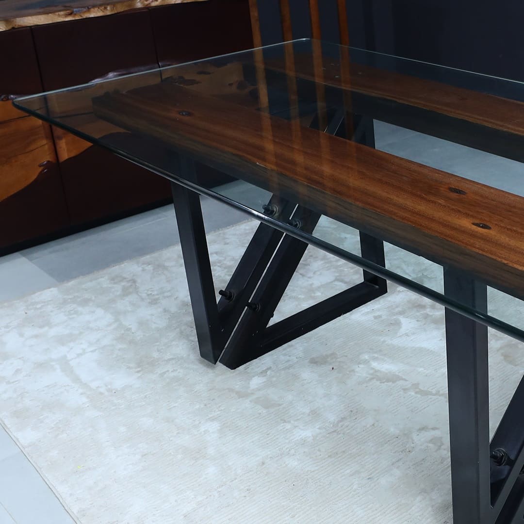تأتي طاولة الطعام مع سطح زجاجي شفاف مستطيل الشكل يسمح لك برؤية التفاصيل الخشبية أسفلها؛ مما يعزز جمال التصميم ويخلق تباينًا رائعًا بين المواد المختلفة.
