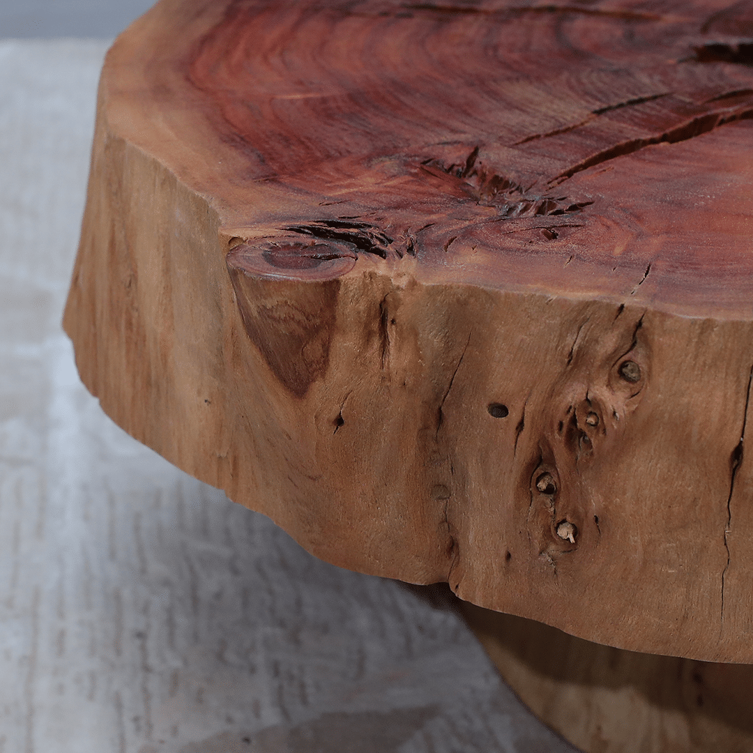 تأتي الطاولة بحواف غير منتظمة تحافظ على الشكل الأصلي لجذع الشجرة؛ مما يجعل كل قطعة فريدة من نوعها، وكأنها منحوتة بواسطة الطبيعة.