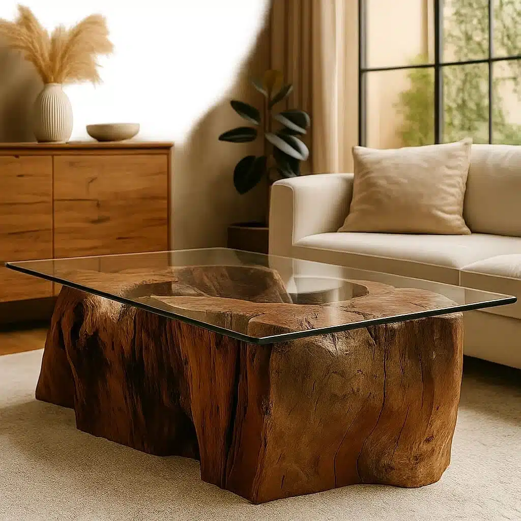 تتميز طاولة القهوة هذه بأنها تعكس جمال الطبيعة؛ حيث تم استخدام أحد أفضل أنواع جذوع الأشجار الطبيعية كمصدر أساسي للتصميم، كما تم الحفاظ على التفاصيل الأصلية للخشب مثل التشققات والعروق والملمس العضوي؛ مما يمنحها لمسة دافئة وطبيعية فريدة.