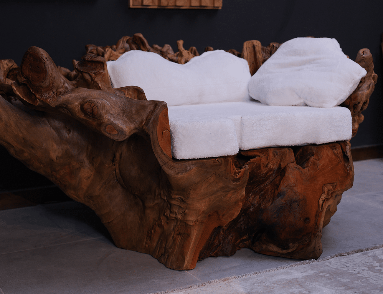 الفخامة والأناقة: يتميز الكرسي بتصميم أنيق وفاخر يبرز جمال الخشب الطبيعي، ويتميز بخطوط بسيطة وأنماط نحت تعكس جودة الحرفية.