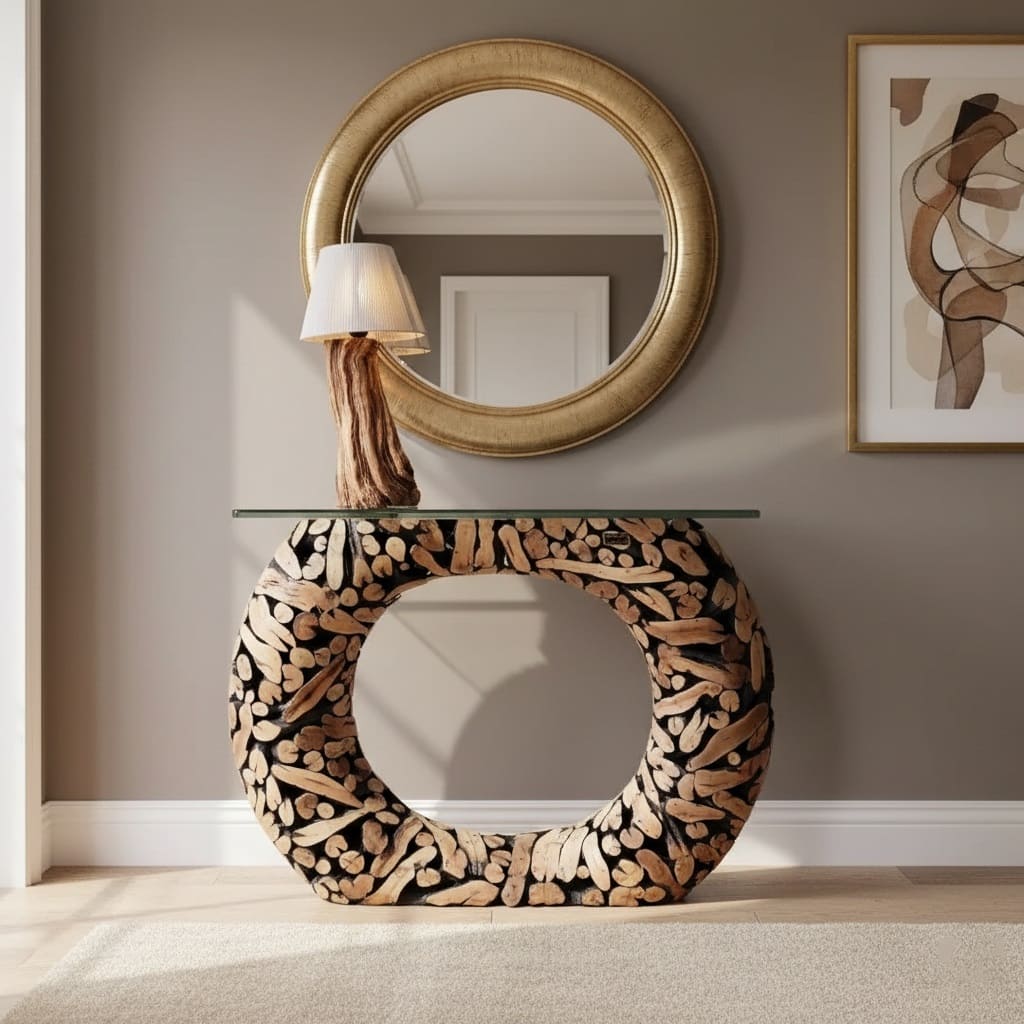 يجمع الكونسول من الخشب الطبيعي هذا بين التصميم الطبيعي والحديث، مما يجعلها خيارًا مثاليًا للتكامل مع أنواع مختلفة من الديكور.