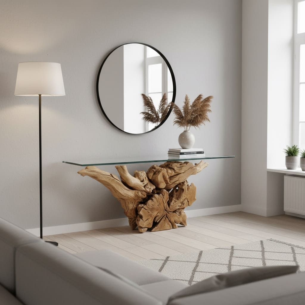 قاعدة الكونسول مصنوعة من أجود الجذور الطبيعية؛ مما يجعلها قطعة فريدة وغير متكررة، بالإضافة إلى التصميم الذي يسلط الضوء على جمال الخشب الطبيعي، ويضيف طابعًا فاخرًا ومميزًا إلى ديكور منزلك.